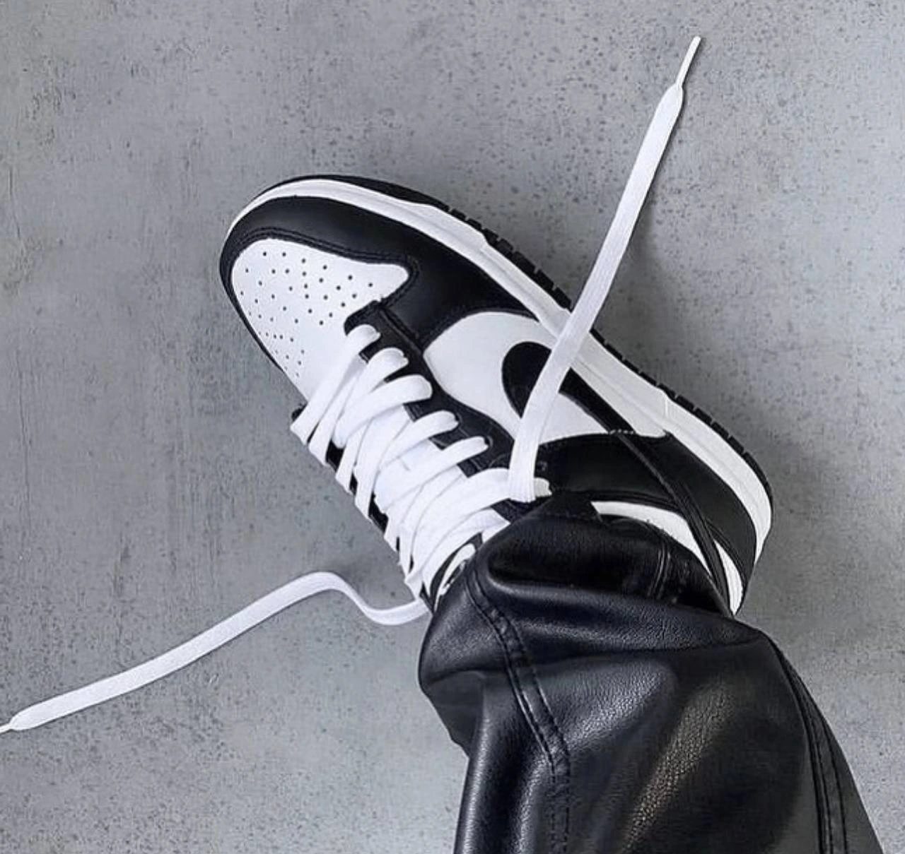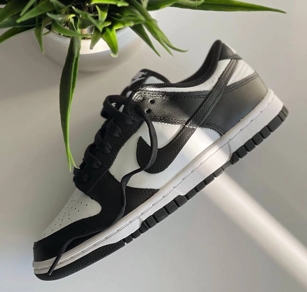 The Nike Dunk Low "Panda" is a highly popular, versatile sneaker featuring a simple two-tone black and white color scheme on a classic 1985 low-top silhouette. Constructed with leather, it includes a white base, black overlays, a black Swoosh, and a white midsole, offering a timeless, minimalist aesthetic suited for everyday wear.