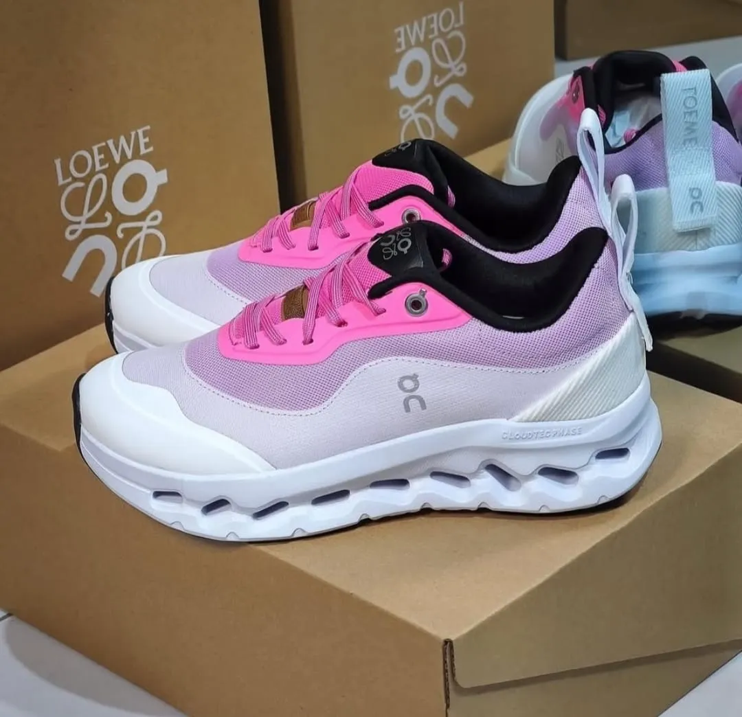 The On Cloudtilt x Loewe in Pale Pink/White is a luxury, lightweight walking shoe merging Swiss engineering with high-fashion, featuring CloudTec Phase™ technology for seamless weight transfer. It boasts a breathable, 99% recycled polyester mesh upper, speed laces, and co-branded logos. Designed for daily urban wear, this collaboration offers a soft, elegant aesthetic with cushioned, responsive comfort.
