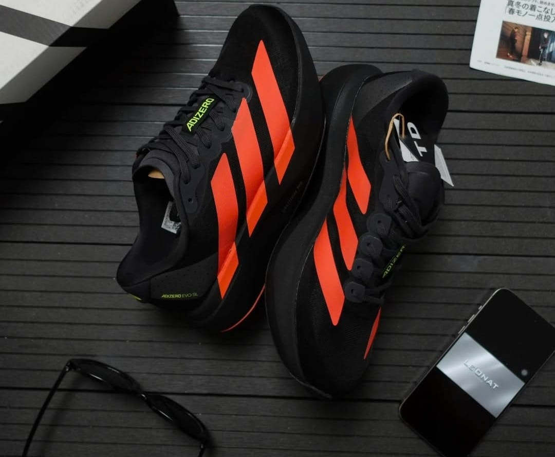 The Adidas Adizero Evo SL in Carbon/Lucid Red is a lightweight, high-performance running shoe inspired by the Adizero Pro Evo 1, featuring a breathable mesh upper, a full-length Lightstrike Pro midsole for responsive cushioning, and a Continental Rubber outsole. It is designed for fast, everyday training and race days .